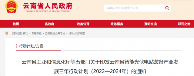 云南省工業(yè)和信息化廳等五部門關于印發(fā)云南省智能光伏電站裝備產(chǎn)業(yè)發(fā)展三年行動計劃(2022—2024年)的通知
