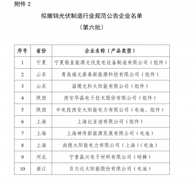 2.擬撤銷光伏制造行業(yè)規(guī)范公告企業(yè)名單(第六批)