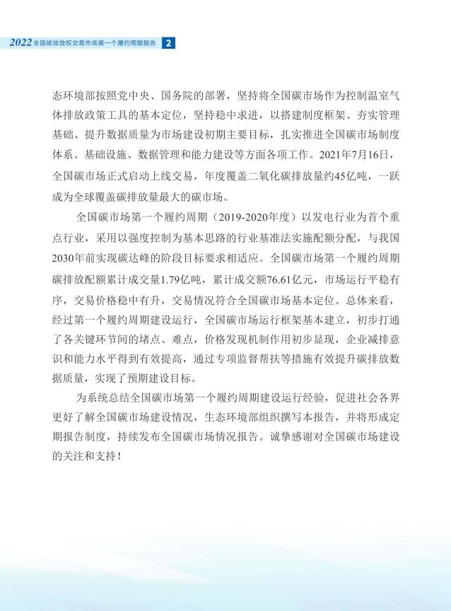 1月1日,生態(tài)環(huán)境部消息,為系統(tǒng)總結(jié)全國碳排放權(quán)交易市場(以下簡稱:全國碳市場)第一個(gè)履約周期建設(shè)運(yùn)行經(jīng)驗(yàn),促進(jìn)社會各界更好了解全國碳市場建設(shè)情況,生態(tài)環(huán)境部組織編制了《全國碳排放權(quán)交易市場第一個(gè)履約周期報(bào)告》。