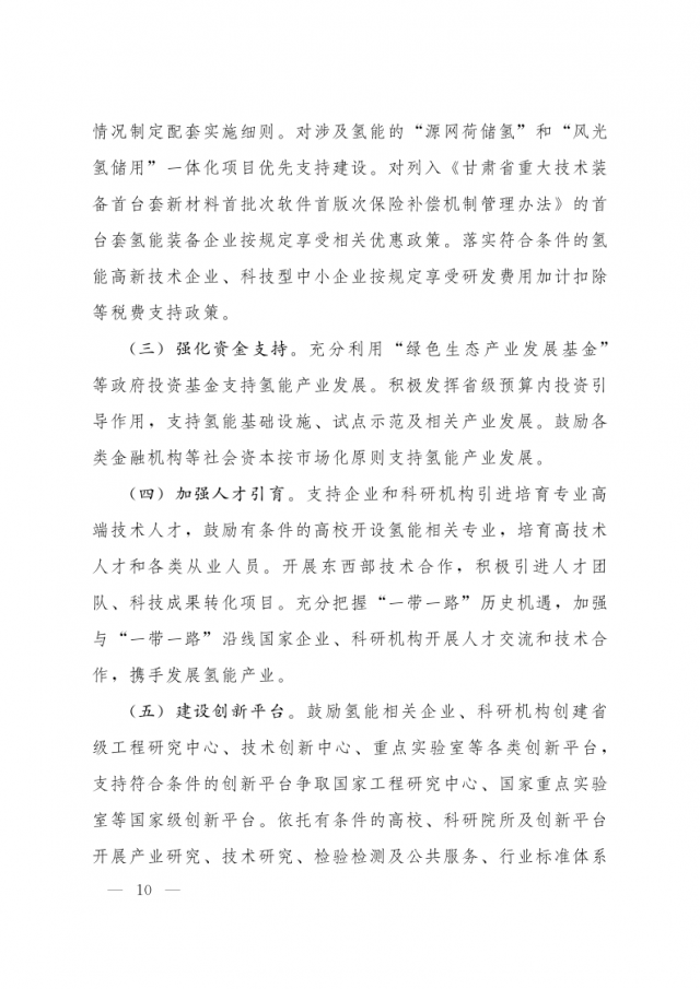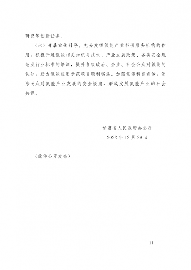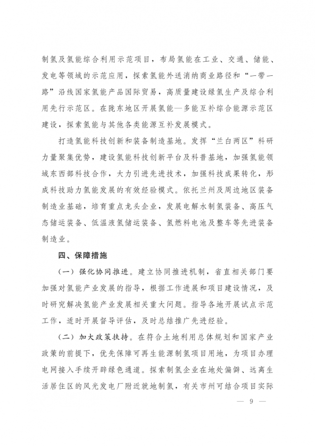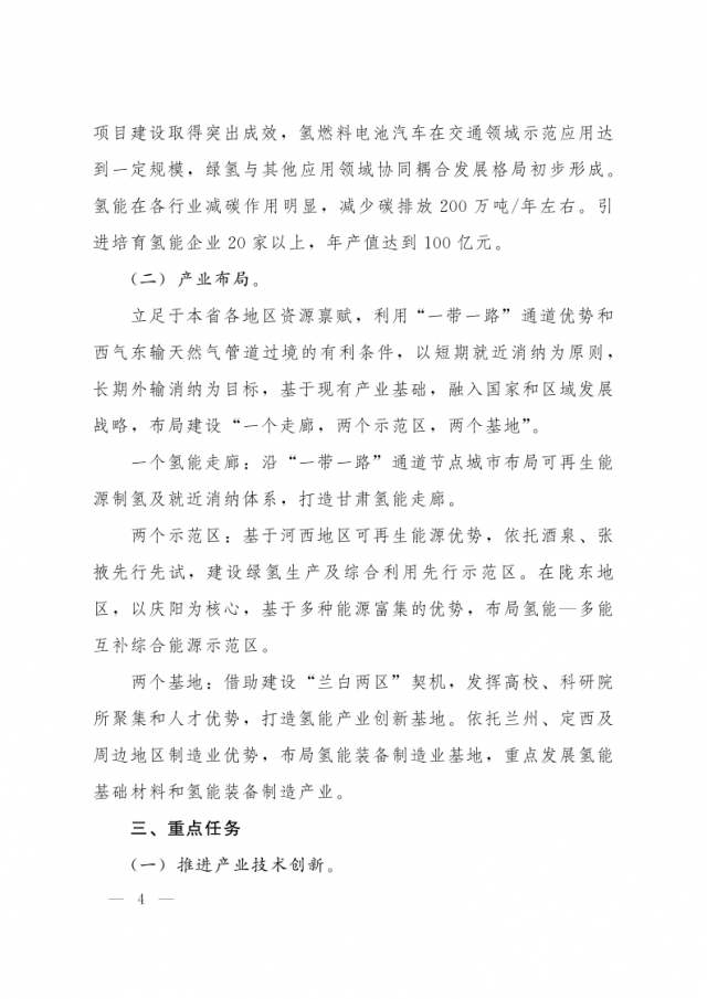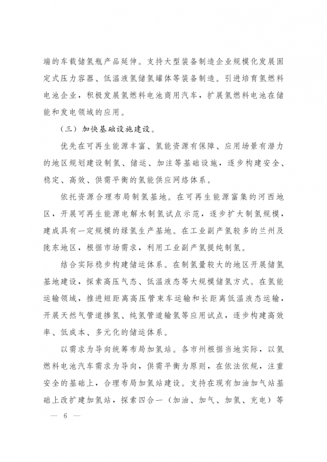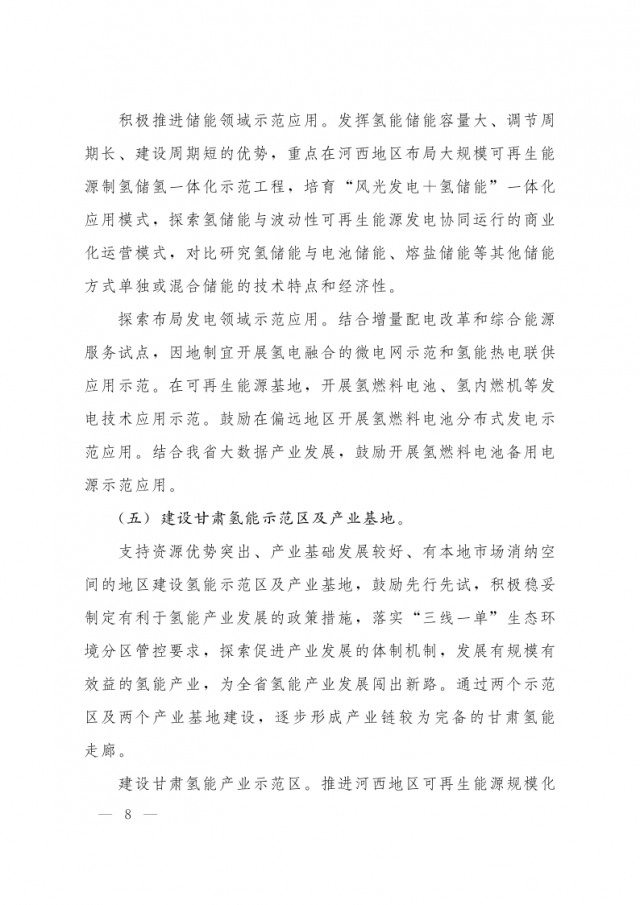 1月3日,甘肅省人民政府辦公廳發(fā)布關(guān)于氫能產(chǎn)業(yè)發(fā)展的指導(dǎo)意見,意見指出,支持在高速公路服務(wù)區(qū)內(nèi)布局建設(shè) “分布式光伏+制氫、儲氫、加氫”一體化示范應(yīng)用。培育 “風(fēng)光發(fā)電+氫儲能”一體化應(yīng)用模式,探索氫儲能與波動性可再生能源發(fā)電協(xié)同運(yùn)行的商業(yè)化運(yùn)營模式,對比研究氫儲能與電池儲能、熔鹽儲能等其他儲能方式單獨(dú)或混合儲能的技術(shù)特點(diǎn)和經(jīng)濟(jì)性。