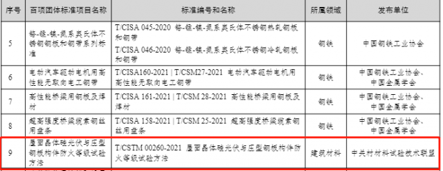 《屋面晶體硅光伏與壓型鋼板構(gòu)件防火等級(jí)試驗(yàn)方法》入圍2022年工信部百項(xiàng)團(tuán)標(biāo)