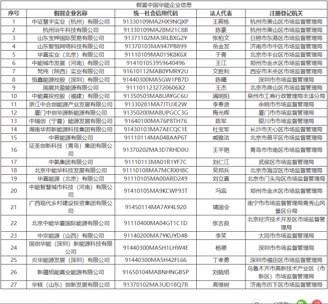 3月22日,華能新能源股份有限公司發(fā)布嚴正聲明,稱有不法分子通過偽造華能新能源股份有限公司證照和印章,在全國多地將17家企業(yè)登記為華能新能源下屬子公司,并可能存在涉嫌以華能新能源及所屬企業(yè)名義開展經營活動的情形,其中部分企業(yè)侵犯了“華能”字號,對華能新能源的聲譽造成不良影響。
