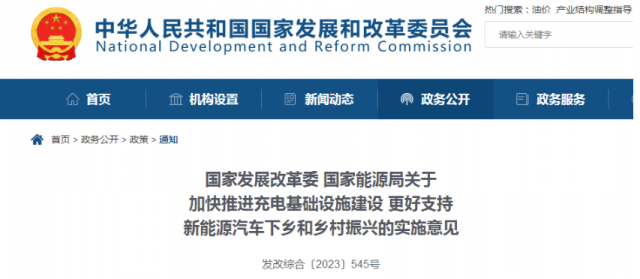 國家發(fā)展改革委 國家能源局關于加快推進充電基礎設施建設 更好支持新能源汽車下鄉(xiāng)和鄉(xiāng)村振興的實施意見
