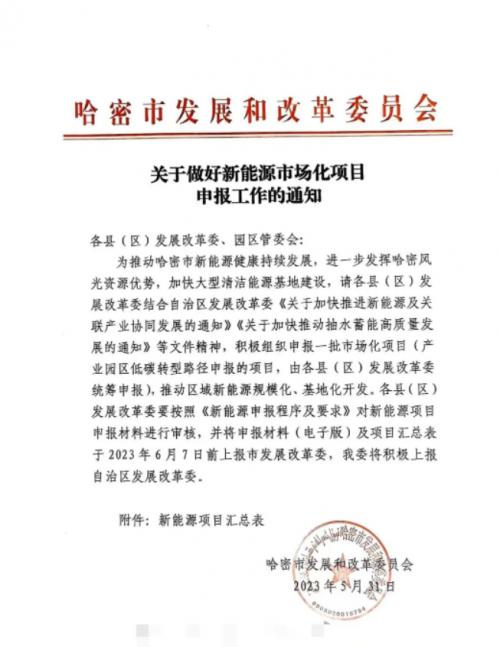 《通知》指出,為推動(dòng)哈密市新能源健康持續(xù)發(fā)展,進(jìn)一步發(fā)揮哈密風(fēng)光資源優(yōu)勢(shì),加快大型清潔能源基地建設(shè),請(qǐng)各縣(區(qū))發(fā)展改革委結(jié)合自治區(qū)發(fā)展改革委《關(guān)于加快推進(jìn)新能源及關(guān)聯(lián)產(chǎn)業(yè)協(xié)同發(fā)展的通知》《關(guān)于加快推動(dòng)抽水蓄能高質(zhì)量發(fā)展的通知》等文件精神,積極組織申報(bào)一批市場(chǎng)化項(xiàng)目(產(chǎn)業(yè)園區(qū)低碳轉(zhuǎn)型路徑申報(bào)的項(xiàng)目,由各縣(區(qū))發(fā)展改革委統(tǒng)籌申報(bào)),推動(dòng)區(qū)域新能源規(guī)?;?、基地化開(kāi)發(fā)。