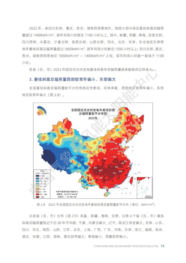 根據(jù)中國(guó)氣象局公布的《2022年中國(guó)風(fēng)能太陽(yáng)能資源年景公報(bào)》,太陽(yáng)能資源每年都會(huì)發(fā)生變化。其中,2022年為太陽(yáng)能資源大年,全國(guó)平均的年水平面總輻射量比近30年平均值高出約3%。因此,2022年的光伏發(fā)電量應(yīng)該普遍偏好!