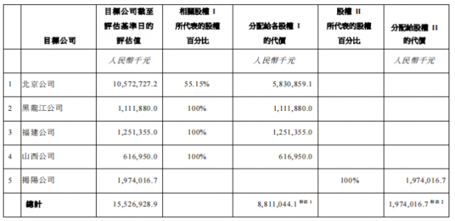 其中,公司與國家電投訂立協(xié)議I,據(jù)此,公司有條件同意收購,而國家電投有條件同意向公司出售股權(quán)I(包括于北京公司55.15%的股權(quán)、于福建公司、黑龍江公司及山西公司100%的股權(quán)),代價(jià)為人民幣88.11億元,將以現(xiàn)金結(jié)算。