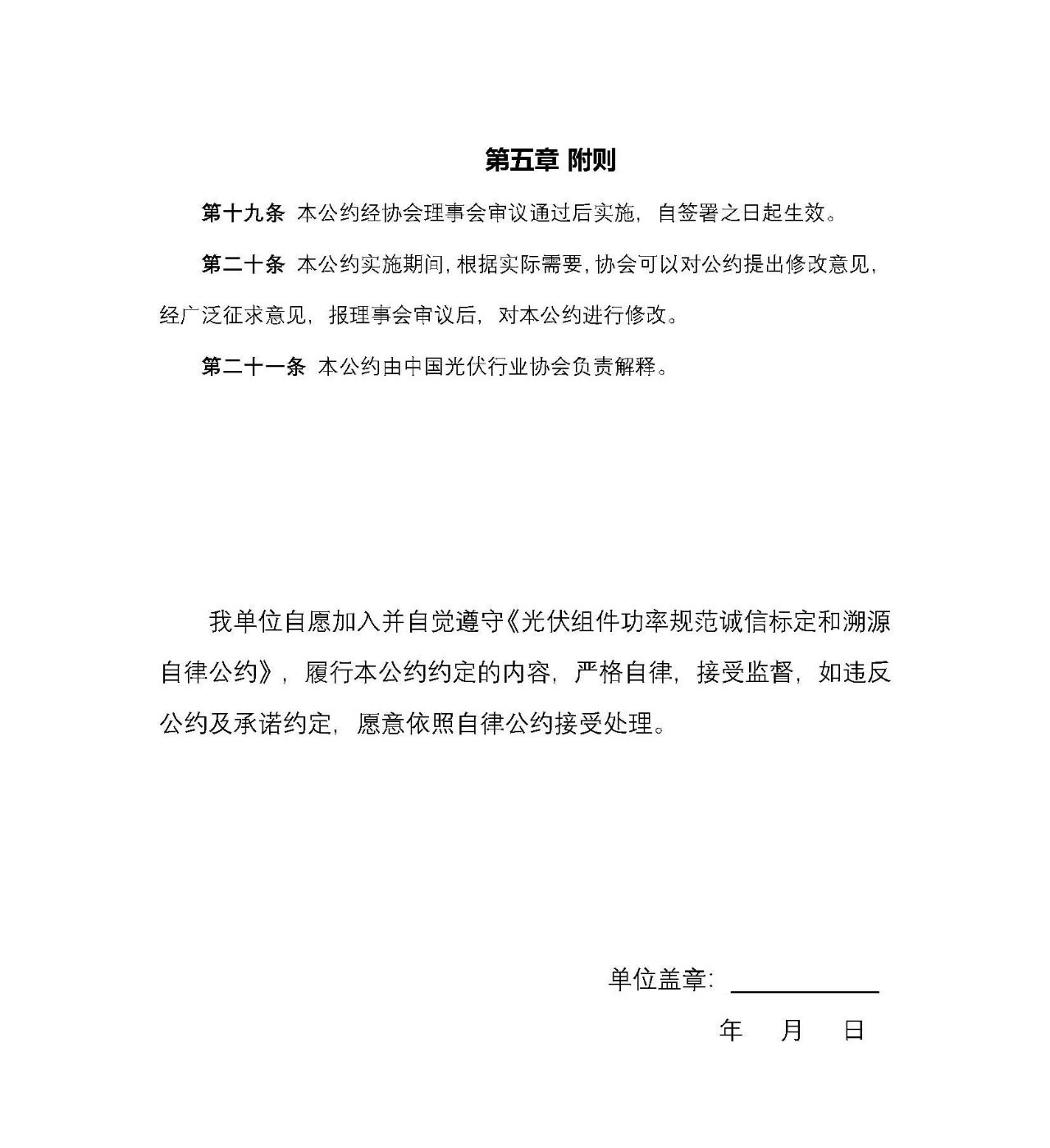 目前,中國(guó)光伏行業(yè)協(xié)會(huì)已組織40余家光伏企事業(yè)單位簽署了《自律公約》,涵蓋國(guó)內(nèi)骨干光伏組件企業(yè)、第三方檢測(cè)機(jī)構(gòu)、認(rèn)證計(jì)量機(jī)構(gòu)等多個(gè)環(huán)節(jié),后續(xù)還將組織更多單位參與簽約。