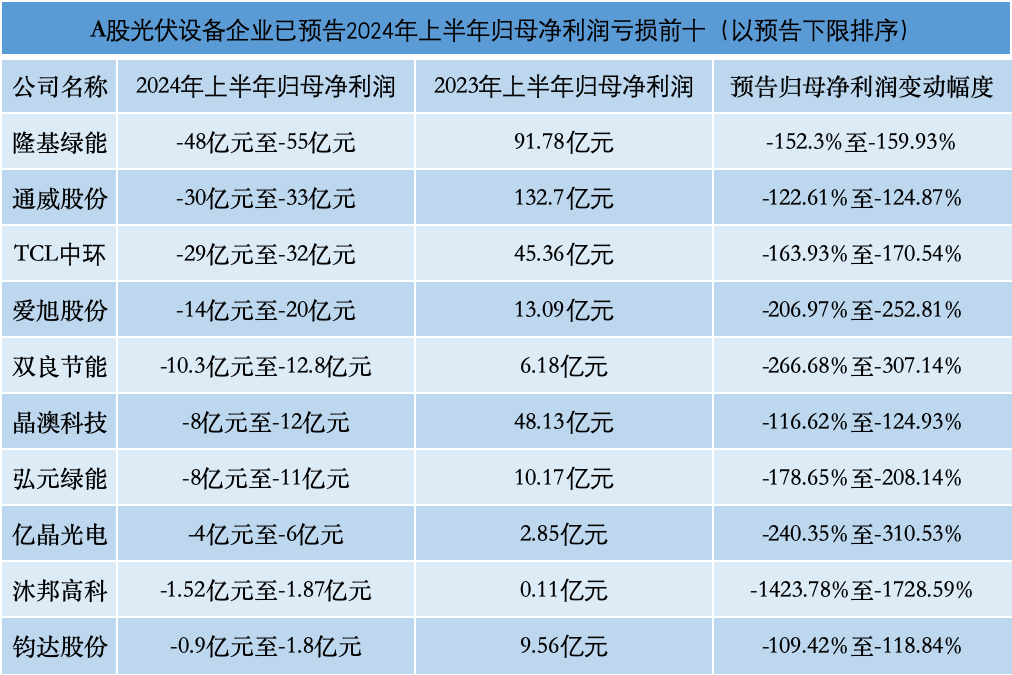 近日,部分光伏企業(yè)預披露了2024年上半年業(yè)績。