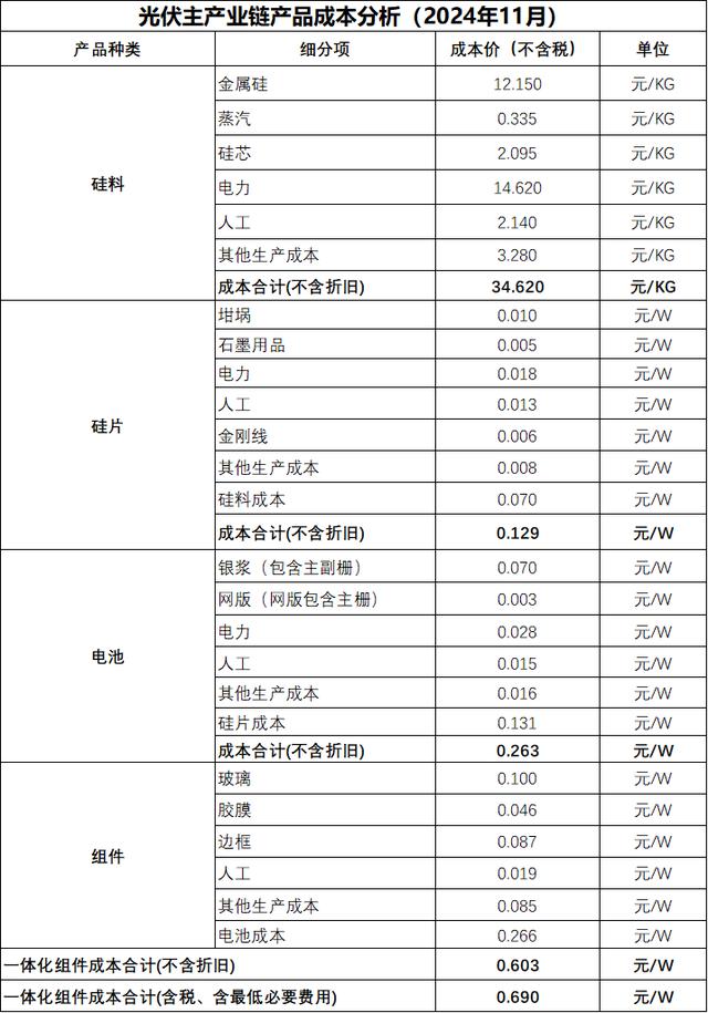 11月20日,協(xié)會更新了11月的成本數(shù)據(jù),在10月份“底價”的基礎上新增考慮最低必要費用,將組件最低成本價提升至0.69元/瓦。