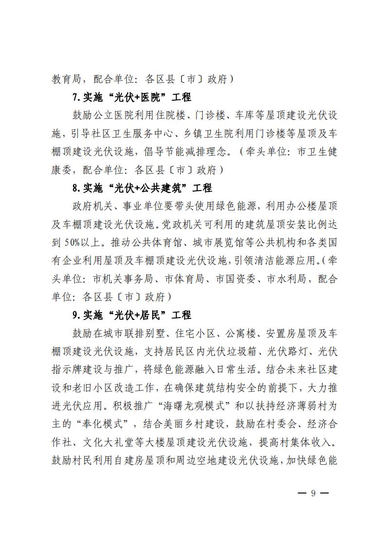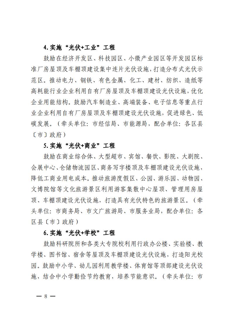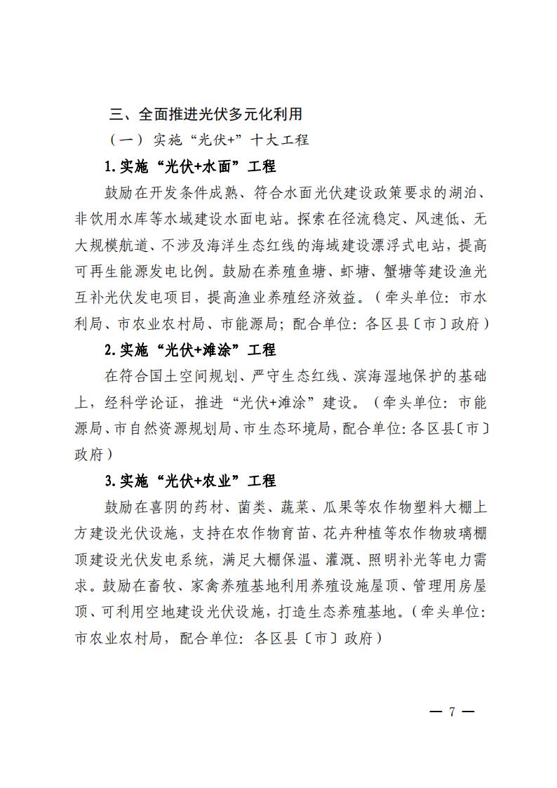 同時(shí)還提到全面推進(jìn)光伏多元化利用:實(shí)施“光伏+”十大工程,大力推進(jìn)整縣(市、區(qū))分布式光伏開(kāi)發(fā),開(kāi)展光伏資源排查等。