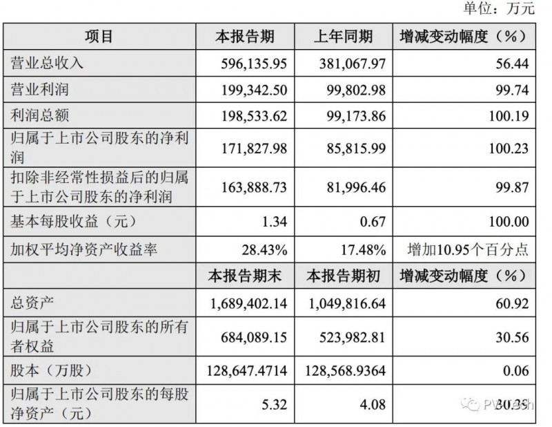 3月8日晚間,晶盛機(jī)電(300316.SZ)發(fā)布2021年度業(yè)績(jī)快報(bào),報(bào)告期內(nèi),公司營(yíng)業(yè)總收入約59.61億元,同比增加56.44%;歸屬于上市公司股東的凈利潤(rùn)盈利約17.18億元,同比增加100.23%;基本每股收益盈利1.34元,同比增加100%。