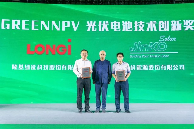 會(huì)上,隆基綠能科技股份有限公司榮獲2022年度“GREENPV 光伏電池技術(shù)創(chuàng)新獎(jiǎng)”;隆基綠能創(chuàng)始人、總裁李振國(guó)榮獲2022年度“GREENPV 光伏貢獻(xiàn)菁英獎(jiǎng)”;隆基綠能中央研究院副院長(zhǎng)徐希翔博士榮獲2022年度“GREENPV 光伏成就菁英獎(jiǎng)”。