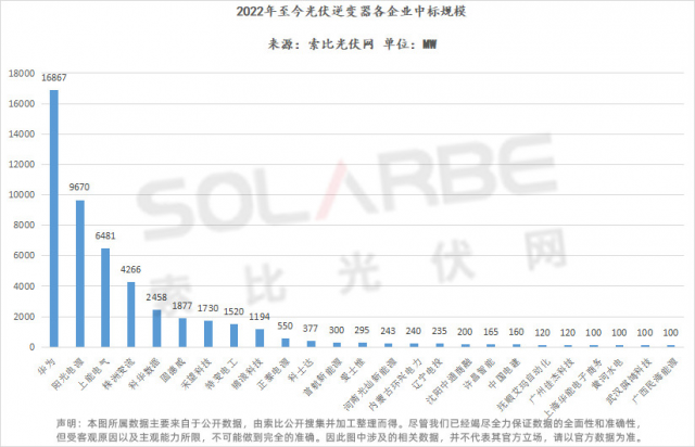 除已經(jīng)公開中標(biāo)規(guī)模的逆變器中標(biāo),還有27.8GW公布了入圍情況,其中陽光電源中標(biāo)15個標(biāo)段、上能電氣中標(biāo)10個標(biāo)段、科華數(shù)據(jù)、禾望科技中標(biāo)各9個、特變電工、錦浪科技各8個、科士達、華為各7個、株洲變流6個。