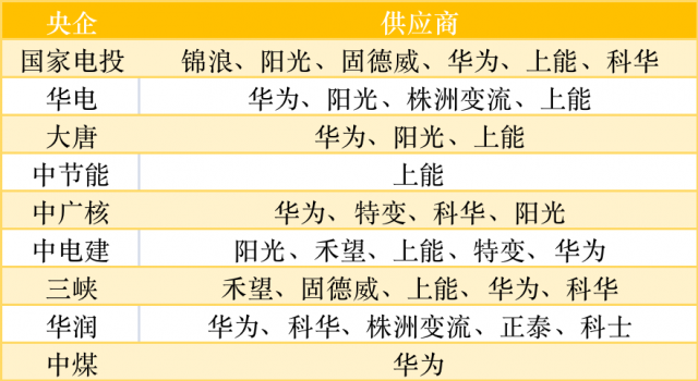 以下為各央企逆變器中標(biāo)分配情況: