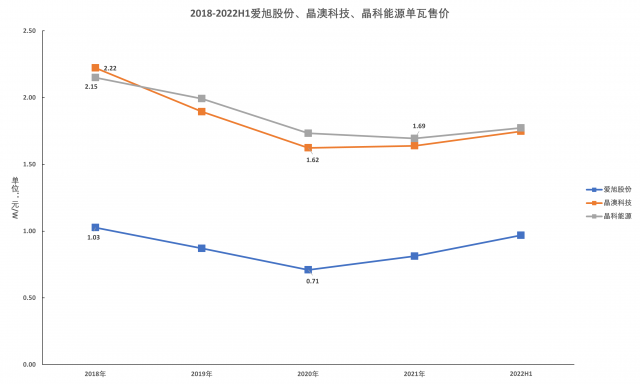 不過,長(zhǎng)久以來(lái),光伏組件價(jià)格持續(xù)下降,十年間降幅接近90%,而在此期間光伏企業(yè)的經(jīng)營(yíng)業(yè)績(jī)卻保持穩(wěn)定增長(zhǎng)。因此,在當(dāng)前光伏行業(yè)市場(chǎng)景氣度高企、出貨量連創(chuàng)新高的背景下,“量升”完全能夠?qū)_“價(jià)降”對(duì)于經(jīng)營(yíng)業(yè)績(jī)的影響,尤其是漲價(jià)幅度相對(duì)有限的電池片和組件環(huán)節(jié)。鑒于此,索比光伏網(wǎng)選取了電池片環(huán)節(jié)的愛旭股份、組件環(huán)節(jié)的晶澳科技和晶科能源作為研究對(duì)象,以測(cè)算“價(jià)降量升”對(duì)于企業(yè)經(jīng)營(yíng)業(yè)績(jī)的影響。