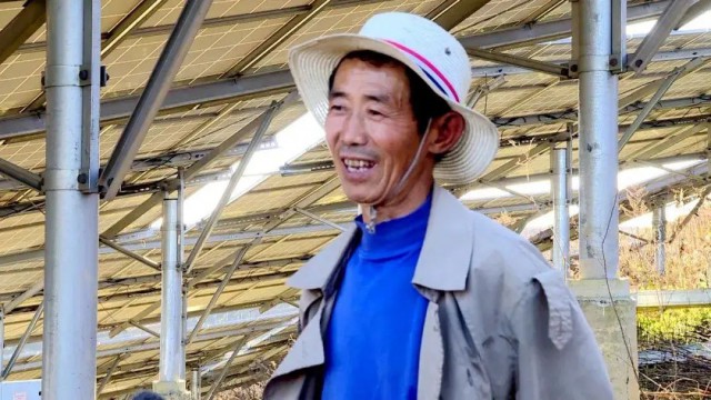 他說:“從搞起光伏電站,對我家來講收益特別好,他們租我家土地17畝,一年能得到一萬多塊錢(流轉費),我們老兩口,打工一個月也就三幾千塊錢,我兒子在里面務農還有三幾千塊錢,總共全家收入一年在7萬左右?!?/p>