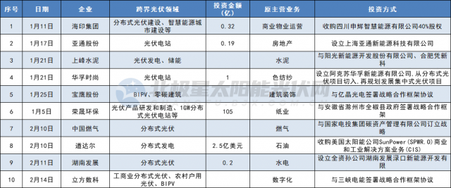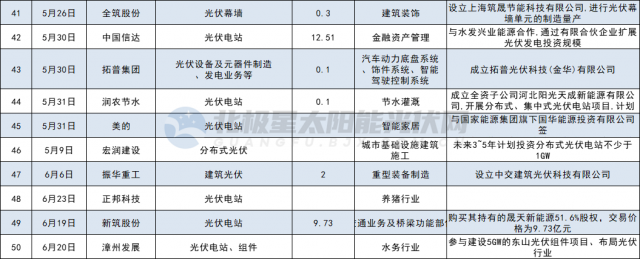 各家公司投資跨界方式不盡相同,有通過收購、設(shè)立光伏公司,或是投資新建光伏項目,或是與其他企業(yè)共建新公司,進入領(lǐng)域從多晶硅、硅片、電池組件、光伏膠膜輔材以及光伏電站等多個細(xì)分賽道。