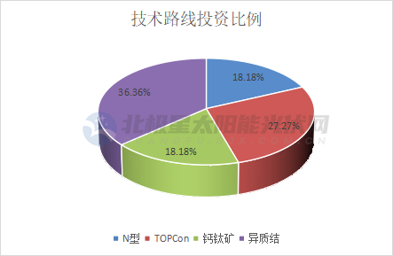 此外,電池組件環(huán)節(jié)也是跨界投資熱門,吸引了包括正業(yè)科技、宏潤建設(shè)、三五互聯(lián)、奧聯(lián)電子等18家企業(yè)投資。從投資路線來看,主要以N型為主,其中投資異質(zhì)結(jié)的企業(yè)占到跨界電池企業(yè)總比的36.36%,投資企業(yè)以天宸股份、水發(fā)能源集團等為代表;TOPCon占27.27%,以三一集團、皇氏集團、棒杰股份、賽福天等為代表。其次,被稱為“未來技術(shù)”的鈣鈦礦也獲企業(yè)青睞,吸引如騰訊、奧聯(lián)電子等企業(yè)入局投資。