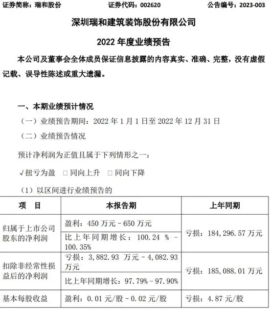 公司業(yè)績(jī)變動(dòng)的主要原因系2021年度我司因受恒大債務(wù)違約影響,基于謹(jǐn)慎性原則,對(duì)相關(guān)資產(chǎn)專項(xiàng)計(jì)提了減值準(zhǔn)備,導(dǎo)致我司2021年凈利潤(rùn)虧損。2022年我司除恒大業(yè)務(wù)外,業(yè)務(wù)保持持續(xù)穩(wěn)定發(fā)展,連續(xù)承接多項(xiàng)優(yōu)質(zhì)裝飾設(shè)計(jì)施工項(xiàng)目,同時(shí)在當(dāng)下國(guó)家雙碳目標(biāo)下,公司依托在光伏領(lǐng)域的先發(fā)優(yōu)勢(shì),開(kāi)拓光伏EPC工程。目前公司各項(xiàng)業(yè)務(wù)正穩(wěn)步開(kāi)展,生產(chǎn)正常運(yùn)轉(zhuǎn)。
