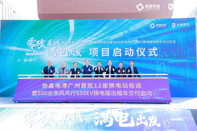 2月18日,協鑫能科與東風柳汽聯合舉辦“零碳羊城,滿電出發(fā)”協鑫電港廣州開城暨500臺東風風行S50EV換電版出租車交付儀式,拉開了立足羊城,助力大灣區(qū)城市低碳化、電動化進程的帷幕?!皷|風風行-協鑫能科”聯名款換電版車型現場精彩亮相。廣州市白云區(qū)委副書記、區(qū)長潘志軍,白云區(qū)委常委、常務副區(qū)長楊顏澤,全國出租車協會副秘書長鄭永志,廣州市新能源汽車服務業(yè)協會會長謝向東,東風柳汽總經理唐競,協鑫能科CEO王振輝等到會共同為項目啟動。