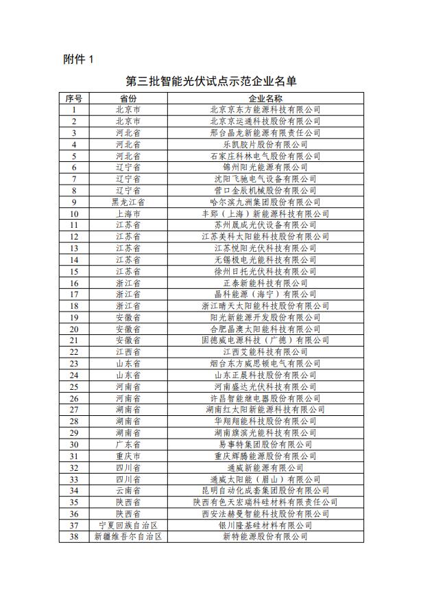 附件:1.第三批智能光伏試點(diǎn)示范企業(yè)名單