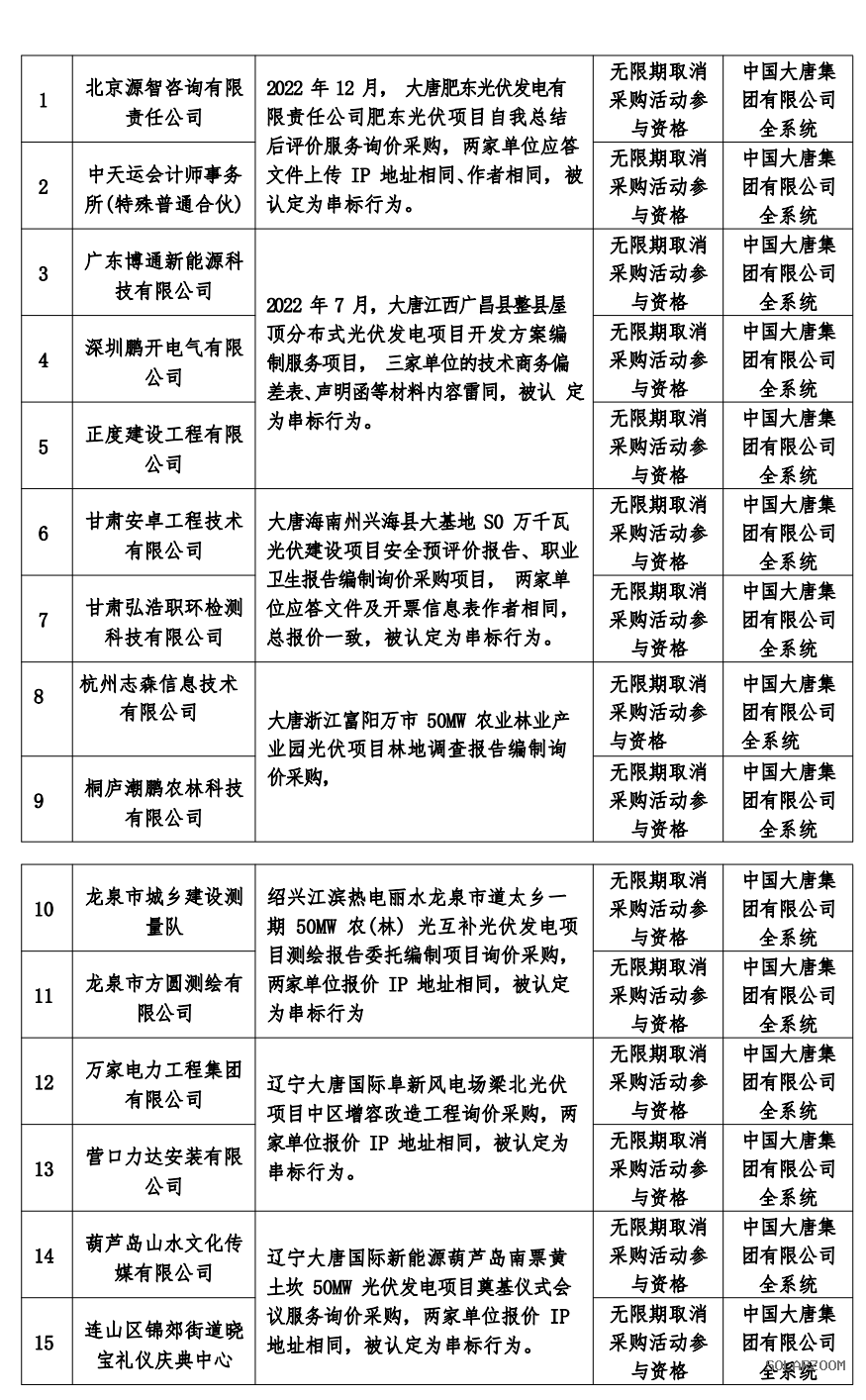 中國大唐集團(tuán)有限公司關(guān)于供應(yīng)商不良行為處理情況的公告 (2023年第2批)