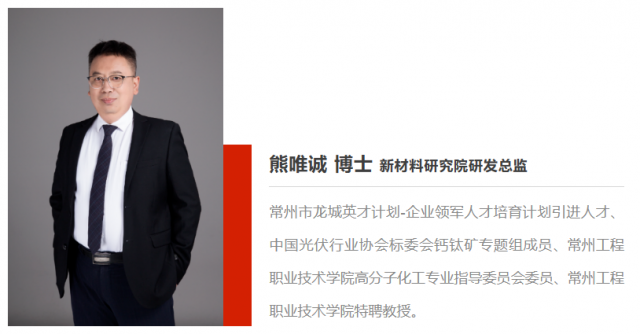 熊唯誠博士不僅在企業(yè)內(nèi)部發(fā)揮帶頭引領(lǐng)作用,還積極參加行業(yè)科研交流,推進行業(yè)技術(shù)進步。他受邀加入全國首個鈣鈦礦領(lǐng)域標準工作專題組,與專題組優(yōu)秀同仁攜手推動鈣鈦礦光伏電池標準化制定,助力鈣鈦礦技術(shù)與產(chǎn)業(yè)化發(fā)展。其主持研發(fā)的相關(guān)課題產(chǎn)品分別獲得“江蘇省高新技術(shù)產(chǎn)品”和“常州市高新技術(shù)產(chǎn)品”,為光伏領(lǐng)域技術(shù)變革、降本增效貢獻一份力量。