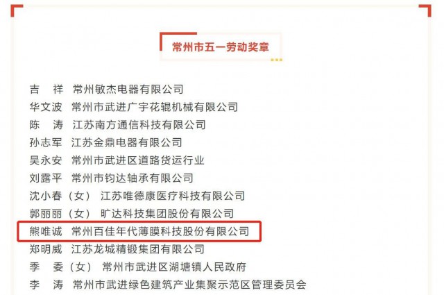 喜報 | 百佳年代熊唯誠博士榮獲“常州市五一勞動獎?wù)隆?/h1>