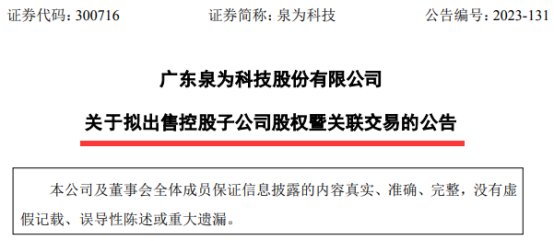公告還披露,泉為科技存在為大江國立提供擔保的情形。截至公告披露日,泉為科技為大江國立的實際擔保余額為3556萬元。本次交易完成后,上述擔保將被動形成關聯(lián)擔保。