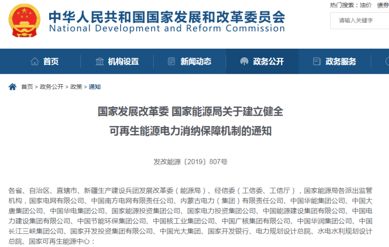2019年5月,國(guó)家發(fā)改委、國(guó)家能源局印發(fā)《關(guān)于建立健全可再生能源電力消納保障機(jī)制的通知》(發(fā)改能源〔2019] 807號(hào)),提出綠證作為市場(chǎng)主體完成消納責(zé)任權(quán)重的補(bǔ)充方式。