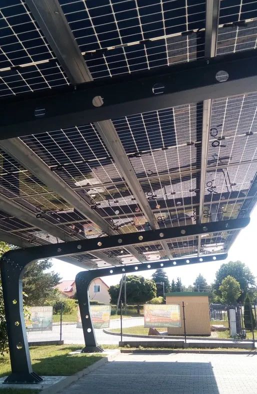 作為歐洲光伏需求旺盛的市場,波蘭早就將“光伏+車棚”滲透于應(yīng)用當中,出現(xiàn)了一個個“綠色”車棚的身影。中來JW-HD144N高功率、高性價比的雙面組件替代了傳統(tǒng)車棚的膜結(jié)構(gòu)鋼頂,不僅可以遮風(fēng)擋雨、節(jié)能環(huán)保而且實用性強,深藍色的光伏電板在陽光下熠熠生輝,為當?shù)卦鎏砹艘坏懒聋惖娘L(fēng)景。