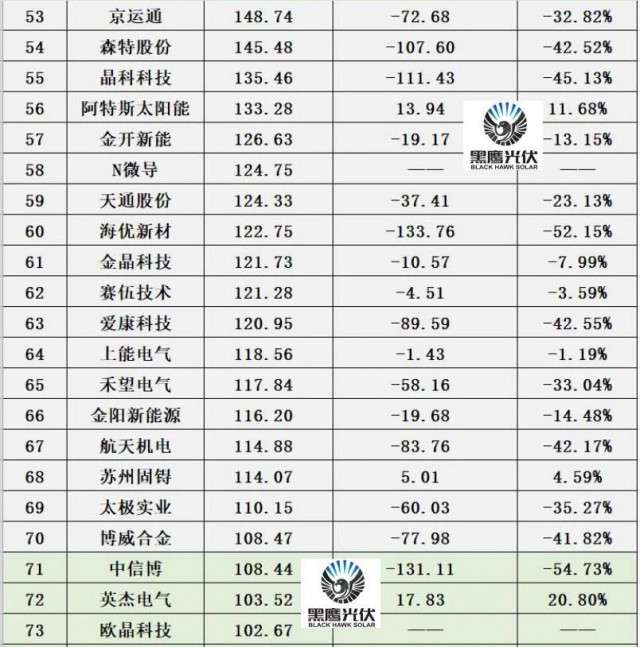 如下表,總市值排在前20的光伏企業(yè),其市值較今年1月1日,其中18家均出現(xiàn)不小幅度下跌。隆基綠能總市值減少1592億,通威股份減少313億,三峽能源跌去577億,陽光電源跌去805億。此外,先導智能、福萊特、正泰電器、晶科科技、海優(yōu)新材等不少企業(yè),相比年初,總市值幾乎都是“腰斬”。