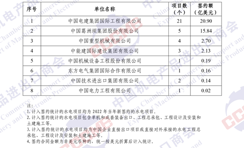 2022年中國(guó)企業(yè)境外水電項(xiàng)目簽約額排名