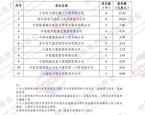 2022年境外電力項(xiàng)目簽約排行榜