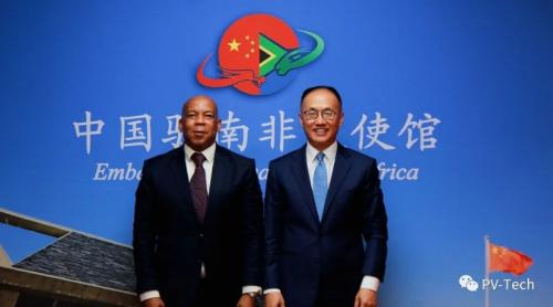 南非電力部長(zhǎng)Kgosientsho Ramokgopa(左)和中國(guó)駐南非大使陳曉東
