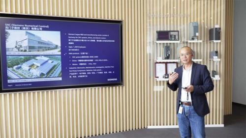 西門子數(shù)控(南京)有限公司總經(jīng)理周郁榮在2023西門子中國零碳先鋒媒體行首站為記者講解