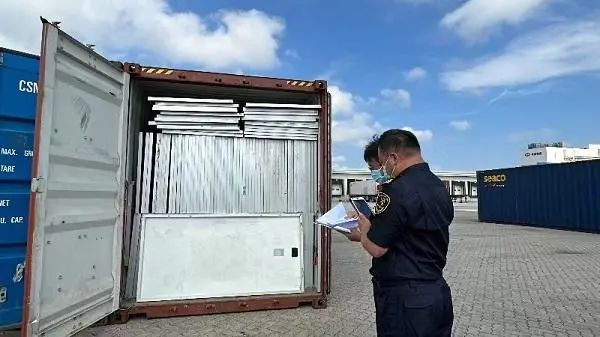 圖說(shuō):洋山海關(guān)在進(jìn)口太陽(yáng)能組件(舊)中查獲固廢。談鑫晨 攝
