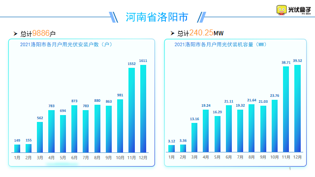 2021年河南省戶用光伏安裝了15.41萬戶,12月份安裝戶數(shù)占全年的22.66%。