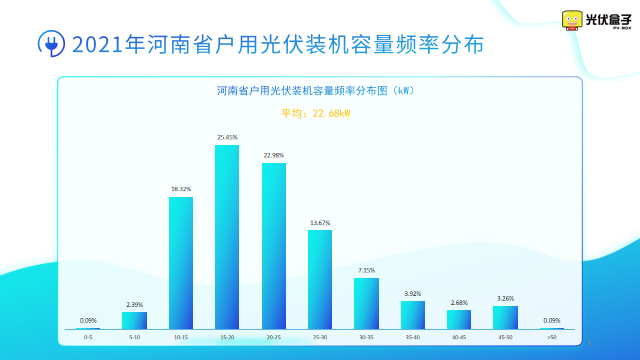以下是2021年河南省戶用裝機頻率分布圖,最大單戶裝機在駐馬店市,為30.4MW。