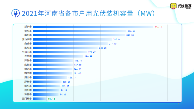 新鄉(xiāng)市是河南省戶用光伏安裝戶數(shù)最高的城市,也是戶用光伏裝機容量最高的城市,2021年全年安裝了2萬戶,447.17MW。