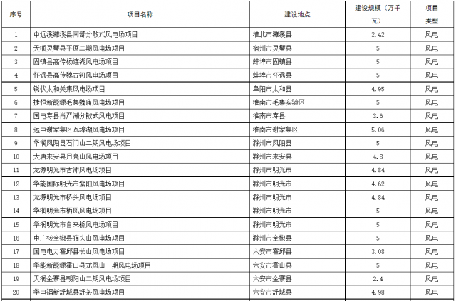安徽省能源局關(guān)于擬收回建設(shè)規(guī)模的風(fēng)電和光伏發(fā)電項目(第一批)的公示