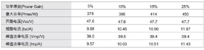 實(shí)際上,要理解這些并不難,較之常規(guī)多晶單晶組件,雙面組件的峰值功率電流及短路電流都有很大提升。為證明這一結(jié)論,我們不妨截取代表性組件企業(yè)主流功率段單晶組件(60片)的性能參數(shù)來看: