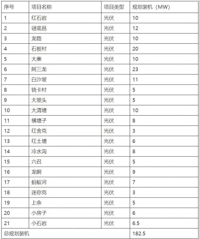(三)項(xiàng)目規(guī)劃資源配置:182.5萬千瓦光伏發(fā)電項(xiàng)目(以上容量為規(guī)劃裝機(jī),需投資主體根據(jù)政策進(jìn)一步排查落實(shí))。