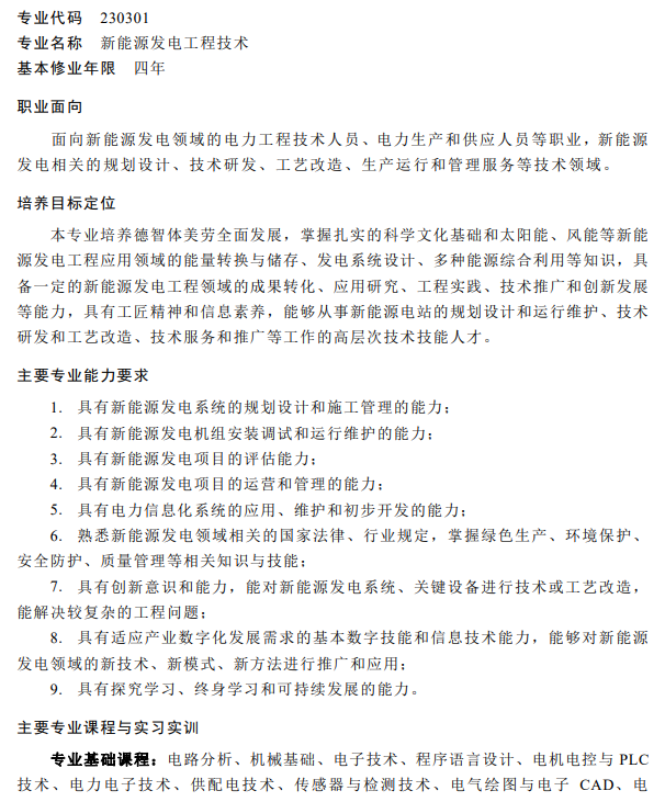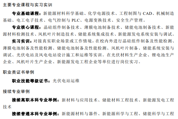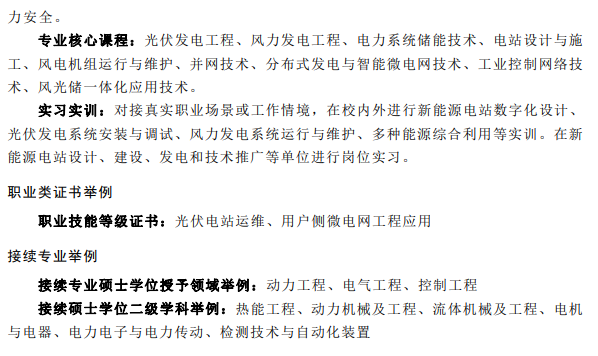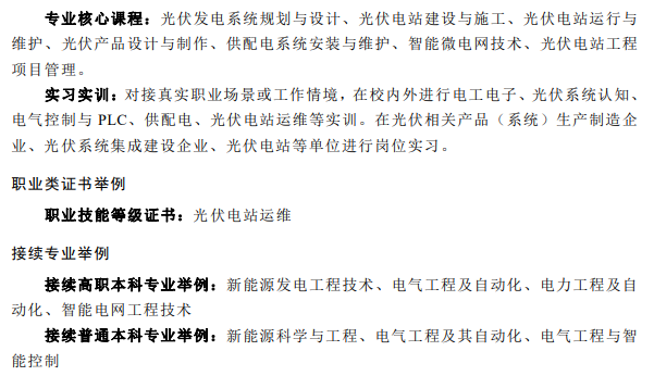 在中等職業(yè)教育、高等職業(yè)教育??茖I(yè)、高等職業(yè)教育本科專業(yè)的簡介中均包含光伏相關專業(yè),都同屬于能源動力與材料大類新能源發(fā)電工程類。
