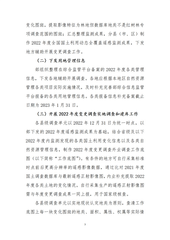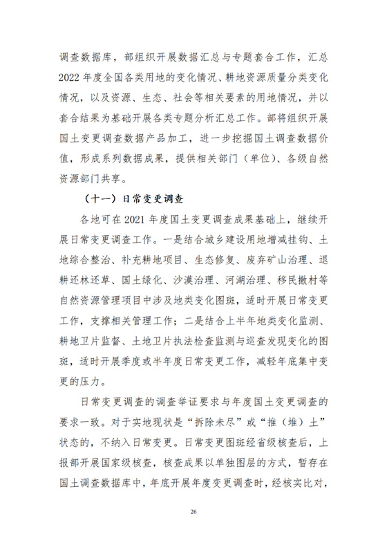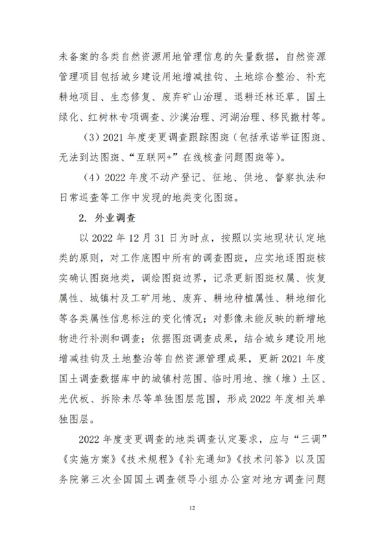 根據(jù)工作需要,部組織編制了《2022年度全國國土變更調(diào)查實施方案》,并對《年度國土變更調(diào)查技術(shù)規(guī)程》作了修訂,隨本通知一并印發(fā)執(zhí)行。