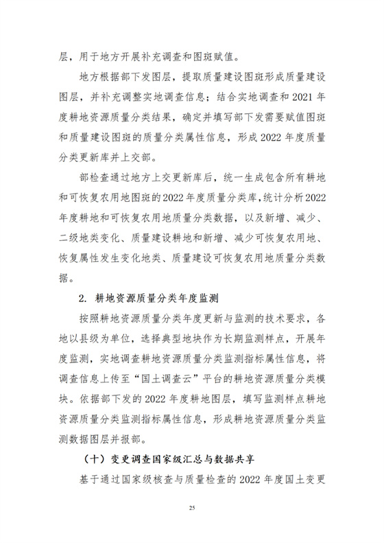 2023年6月15日前,部組織完成2022年度變更調(diào)查最終數(shù)據(jù)庫質(zhì)檢、更新入庫及數(shù)據(jù)匯總分析工作。同時,下發(fā)2022年度耕地資源質(zhì)量分類更新涉及的相關(guān)圖層。
