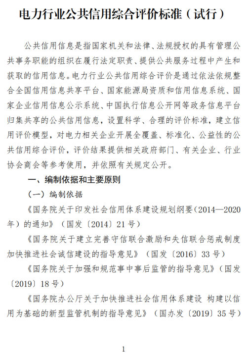 國家能源局關(guān)于印發(fā)《電力行業(yè)公共信用綜合評價標(biāo)準(zhǔn)(試行)》的通知