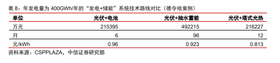 同時(shí),考慮到國(guó)內(nèi)電力系統(tǒng)轉(zhuǎn)型同時(shí)從“大基地+大電網(wǎng)”和“分散式電源+分布式智 能電網(wǎng)”雙線并行,兩種模式下產(chǎn)生了當(dāng)下不同的技術(shù)路線、解決方案偏好。前者重點(diǎn)在 國(guó)內(nèi)“十四五”期間約 450GW 風(fēng)光大基地的基礎(chǔ)上,配置靈活性資源;扣除前兩批大基 地中較多配置在原有大基地及特高壓外輸通道周圍,剩余風(fēng)光大基地結(jié)合目前已落地項(xiàng)目 來看,主靈活性資源一般會(huì)結(jié)合當(dāng)?shù)刭Y源條件選擇靈活性火電或抽水蓄能電站,并補(bǔ)充一 定的鋰電儲(chǔ)能電站及光熱(熔鹽儲(chǔ)熱)電站。后者考慮分布式系統(tǒng)對(duì)靈活布點(diǎn)、項(xiàng)目規(guī)模 的需求差異,多以電化學(xué)儲(chǔ)能電站為主。預(yù)計(jì)在現(xiàn)行政策引導(dǎo)及項(xiàng)目?jī)?chǔ)備背景下,“十四 五”期間光熱電站(熔鹽儲(chǔ)能)新增裝機(jī)規(guī)模 4-5GW,對(duì)應(yīng) EPC 造價(jià)空間約 640-800 億 元,在“十四五”期間國(guó)內(nèi)新增儲(chǔ)能裝機(jī)中占比約 3-4%。