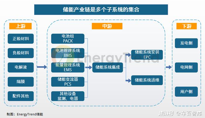 具體來看,鋰電池儲能產(chǎn)業(yè)鏈一般有三個環(huán)節(jié),從上游設(shè)備商、中游系統(tǒng)集成商再到下游應(yīng)用端。儲能項目的建設(shè)流程一般是應(yīng)用端對儲能項目進行招標(biāo),系統(tǒng)集成商去競標(biāo),電池企業(yè)再向集成商提供儲能電池。