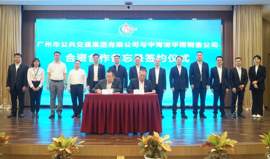 簽約儀式上,廣州公交集團能源有限公司執(zhí)行董事陳偉波、廣州公交海油項目籌備組組長韓冰代表雙方簽訂《合資合作備忘錄》,廣州公交集團黨委書記、董事長、總經(jīng)理李小軍,黨委委員、副總經(jīng)理林殿盛;中海油華南銷售公司黨委書記、總經(jīng)理陳闖等領(lǐng)導(dǎo)見證簽約儀式。